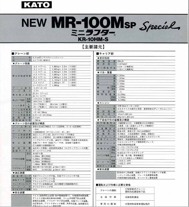 標題:KATO 加藤MR100MSP起重機性能表